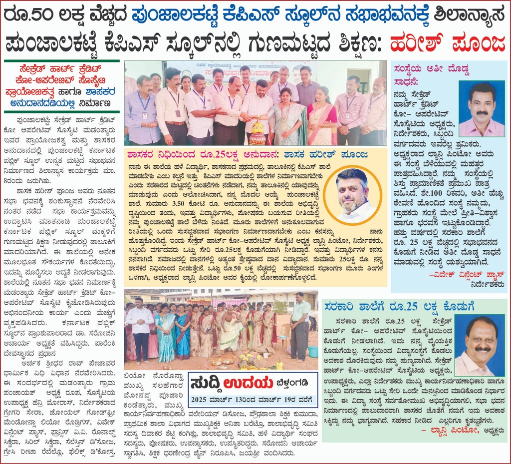 Belthangady MLA Sri Harish Poonja inaugrating the program of foundation stone laying for the new hall for karnataka public school poonjalakatte